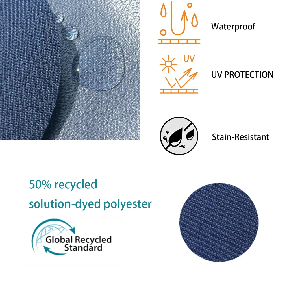 Fabric:50% recycled solution-dyed polyester with TPU coating