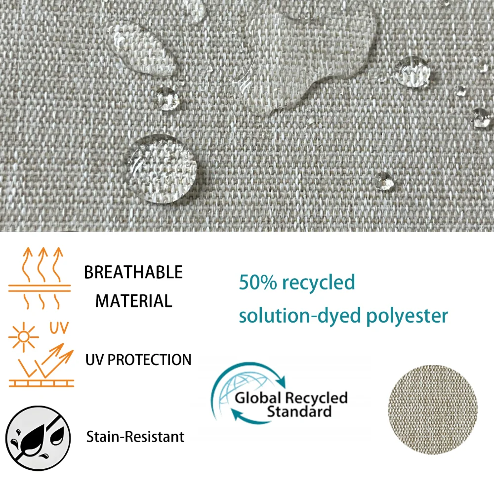 • Premium Performance Fabric: Made with solution-dyed polyester treated with eco-friendly PFAS-free C0 water-repellent technology, this fabric offers outstanding fade resistance, stain resistance, and water repellency, making it ideal for prolonged outdoor use.