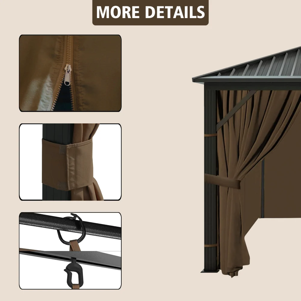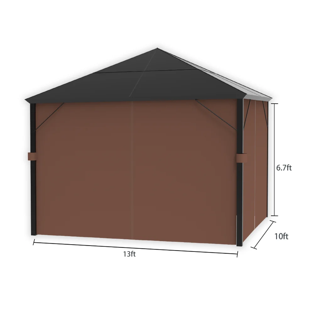 · 13 ft (L) x 10 ft (W) x 6.7 ft (H). The universal gazebo replacement curtains will make your outdoor activity joyful.